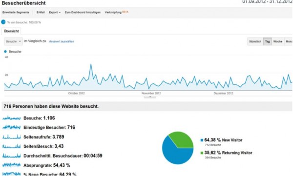 Besucherstatistik Schreibplattform bisher (Zeitraum 1.9. – 31.12.2012):