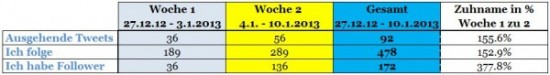 Der Traffic von Twitter hat sich im Vergleich der beiden Wochen erheblich gesteigert. Zur Erinnerung nochmal meine Twitter-Account Daten: