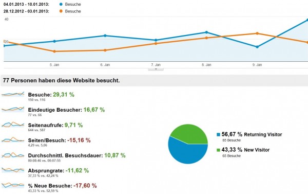 Besucherstatistik Schreibplattform Woche 2 (Zeitraum 4.1. – 10.1.2013):